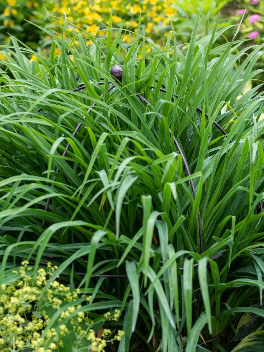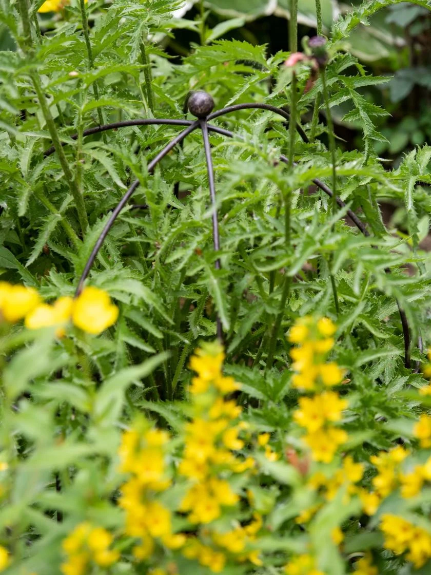 • Sculptural plant support keep large perennials in bounds